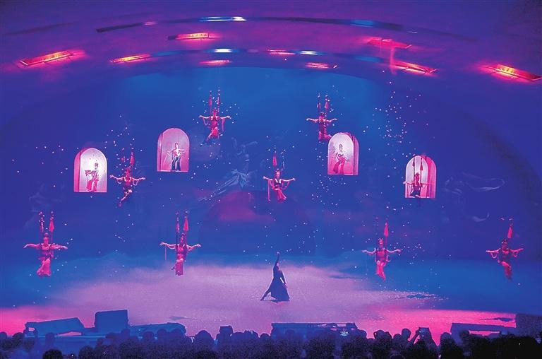 大型沙漠實景劇《敦煌盛典》演出現(xiàn)場。張曉亮