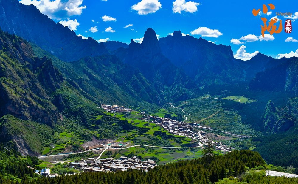 群山環(huán)繞的扎尕那,在湛藍(lán)的蒼穹之下,山勢(shì)奇峻,景色優(yōu)美,蒼松翠柏,郁郁蔥蔥。