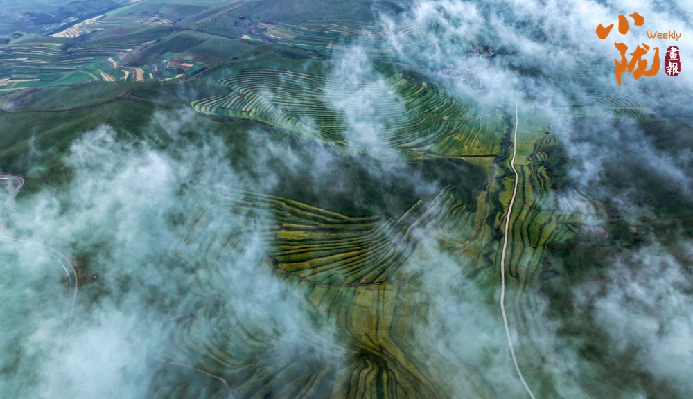 一場秋雨過后,甘南臨潭連綿的群山被云霧籠罩,星羅棋布的梯田上迎來收獲期,稻浪滾滾,美不勝收。