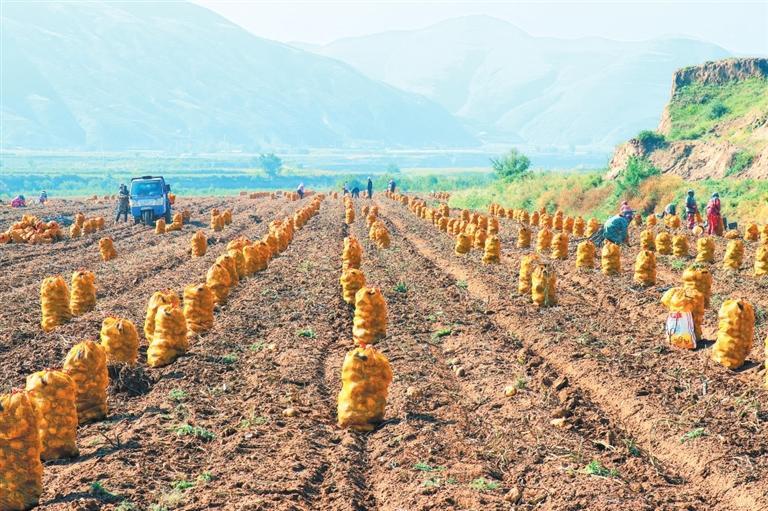 定西市安定區(qū)魯家溝鎮(zhèn)村民在分揀、裝運(yùn)收獲的馬鈴薯。新甘肅·甘肅日報通訊員 胡耀偉