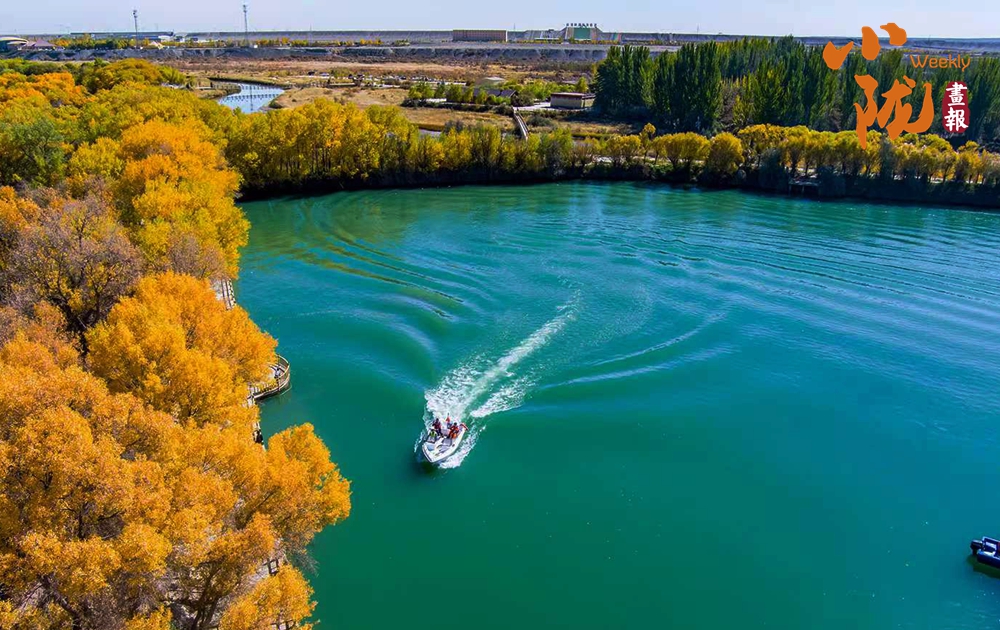 十月胡楊披“金甲”。深秋季節(jié),連片的胡楊樹林在陽光的照射下熠熠生輝,色彩斑斕、美不勝收。