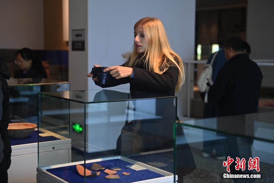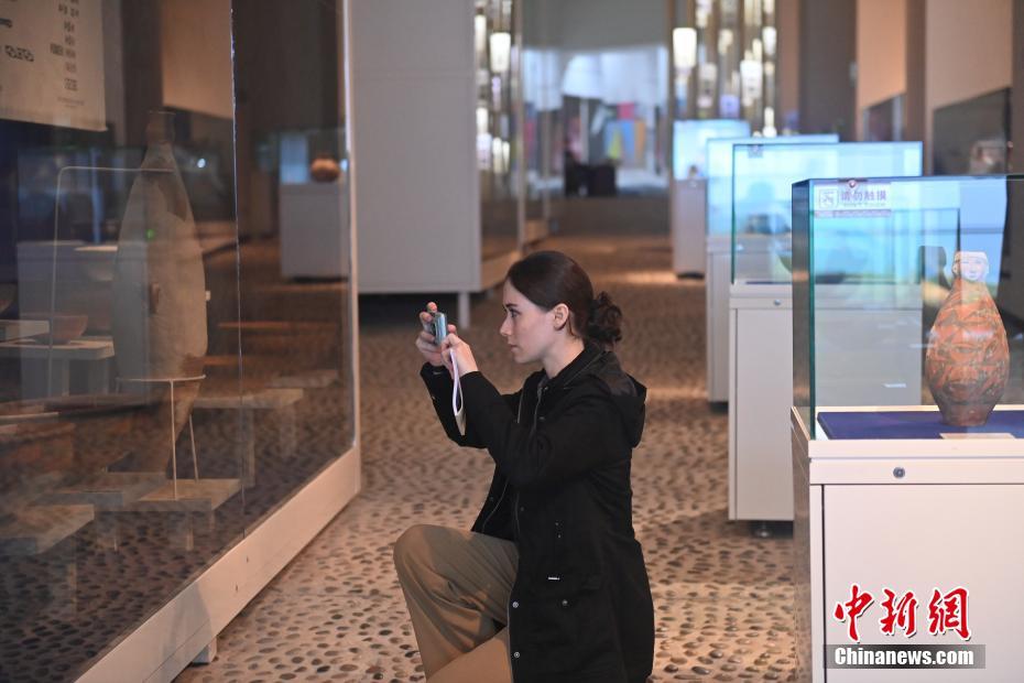 ?。保霸拢玻踩眨玻埃玻辞嗄隄h學(xué)家研修計(jì)劃甘肅班團(tuán)隊(duì)22個(gè)國家的青年漢學(xué)家,走進(jìn)甘肅省天水市秦安縣大地灣遺址參觀并進(jìn)行專題研修。大地灣遺址是新石器時(shí)代大型聚落遺址,出土了中國乃至世界上最早的彩陶文化、最早的文字符號、種植生產(chǎn)了中國第一批糧食品種黍、出現(xiàn)了最早的宮殿式建筑、發(fā)明了世界最早的水泥地面、創(chuàng)造了最早的繪畫作品——F411地畫。圖為國外青年漢學(xué)家拍攝大地灣博物館藏品。中新社記者 李亞龍 攝