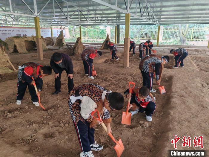 10月16日,大地灣博物館開(kāi)展“史前工坊”特色主題社教活動(dòng),吸引大批孩子參與體驗(yàn)?!?秦安縣委宣傳部供圖)