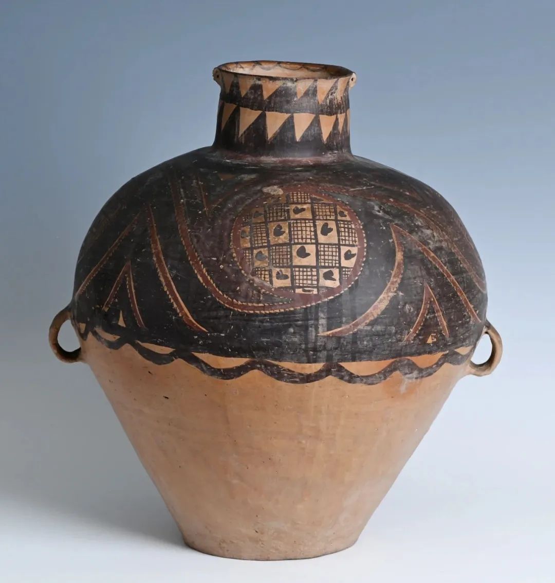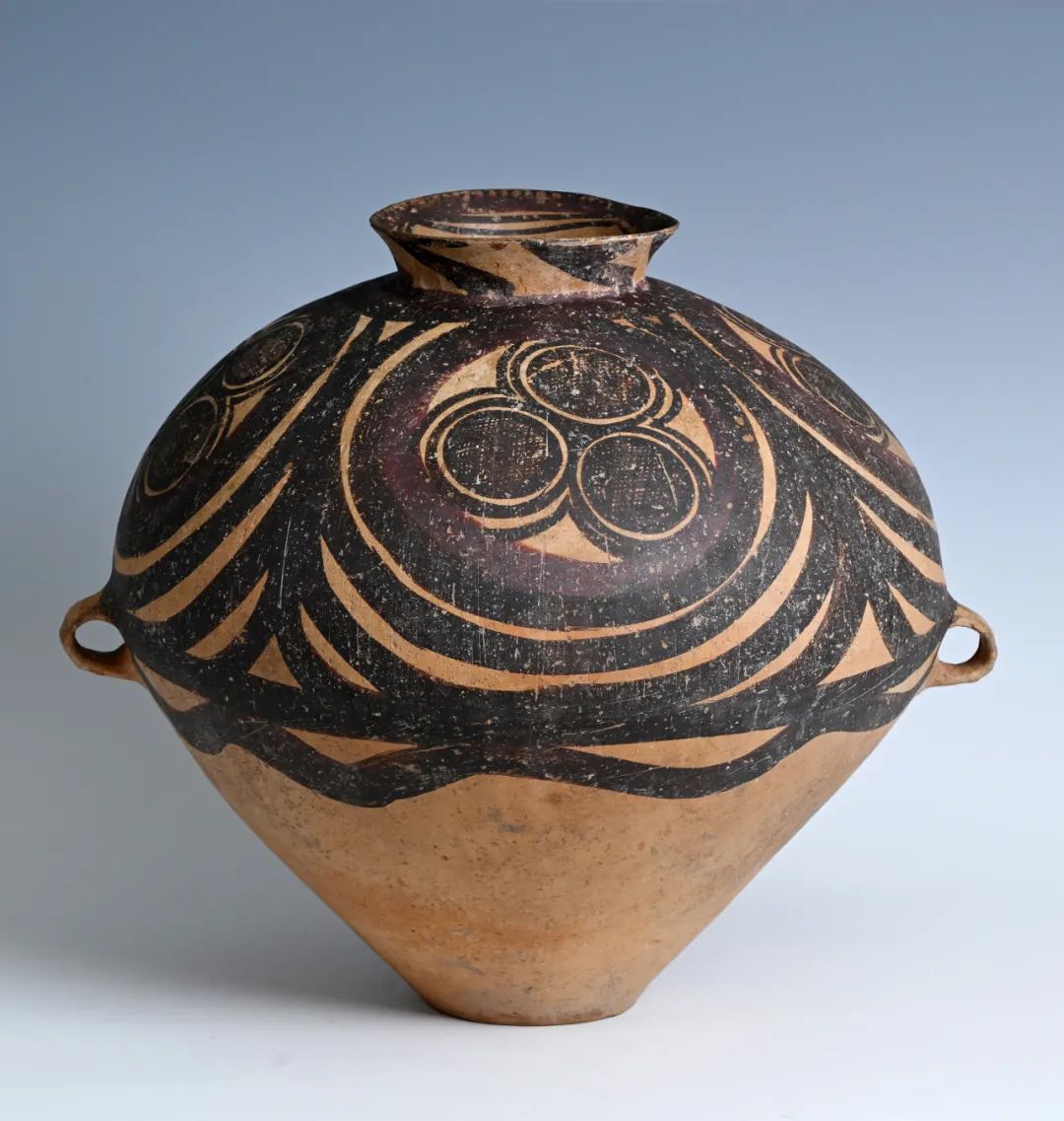 馬家窯文化創(chuàng)造了大批彩陶藝術(shù)精品,被譽為新石器時代彩陶之冠。形式優(yōu)美的漩渦紋是馬家窯類型的典型代表作,精美的半山類型彩陶又被公認為馬家窯文化的巔峰階段,這一時期的彩陶器形勻稱圓潤,紋樣采用黑紅兩色繪制,更加繁麗精致,器具造型和圖案渾然一體,給人帶來賞心悅目的美感享受。