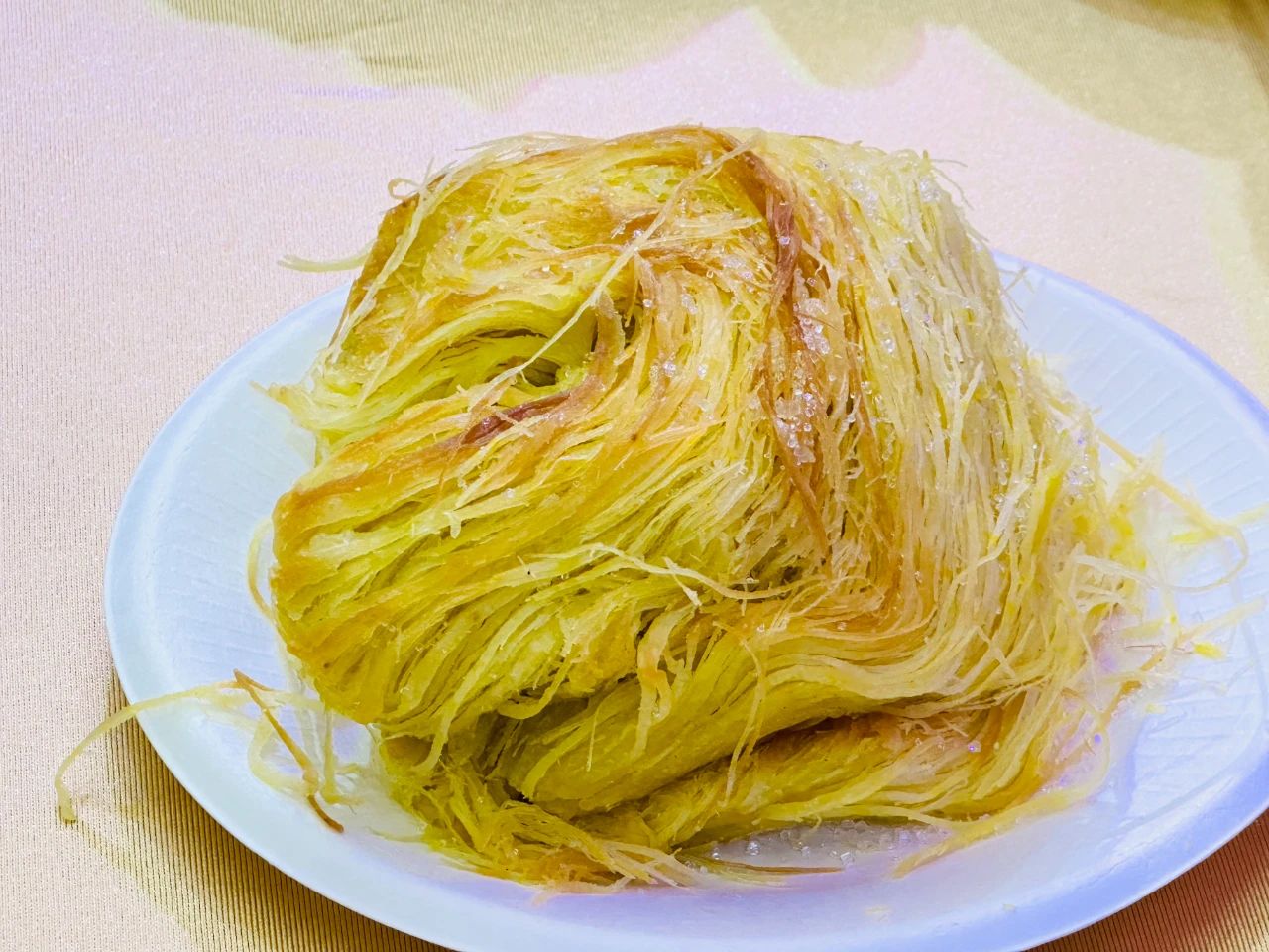一窩絲的制作是一門精細的藝術。面粉、水、鹽和油巧妙混合,揉成光滑面團后,反復地拉伸、對折,直至那面團細如發(fā)絲,再盤成一團放入烤箱中,逐漸變得金黃酥脆。吃起來,那口感是層層疊疊的酥,帶著淡淡的油香,每一根絲在齒間斷裂,釋放出獨特的風味。