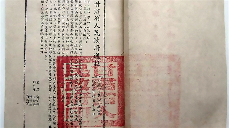 1950年1月8日,鄧寶珊正式就任甘肅省人民政府主席和省長。他感到責任重大,也對甘肅的發(fā)展充滿了希望。他經(jīng)常到下面體察民情,足跡遍布全省的各個縣。在不能通車的偏遠地方,就是步行幾小時也要走到下面的村縣。1952年3月2日,鄧寶珊主席一行從蘭州出發(fā),對武威和酒泉兩個專區(qū)展開視察,歷時一個多月,走訪了永登、古浪、山丹、張掖、敦煌等13個縣。山丹縣1950年劃歸武威專區(qū),1955年后復(fù)歸張掖專區(qū)。