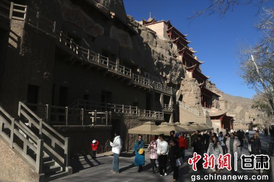 初冬時節(jié),游客走進世界文化遺產(chǎn)甘肅敦煌莫高窟欣賞燦爛的石窟藝術,品味悠久的敦煌歷史文化。