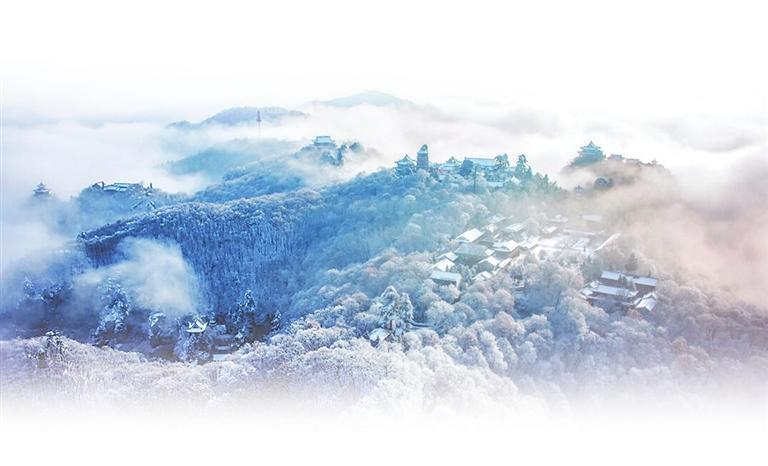 越往前走,感覺如入仙境。入“朝天門”,踏378階“上天梯”,直趨皇城——崆峒最高峰和最大的古建筑群。一路上,或陡峭絕壁,或曲徑通幽,紛紛揚(yáng)揚(yáng)的雪花,似天庭散落的瓊花,輕輕地為崆峒山披上了一層潔白的羽衣,將這方山水點(diǎn)染成如夢(mèng)似幻的仙境。