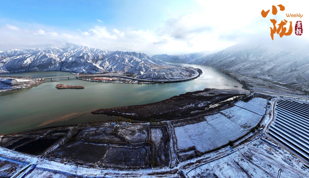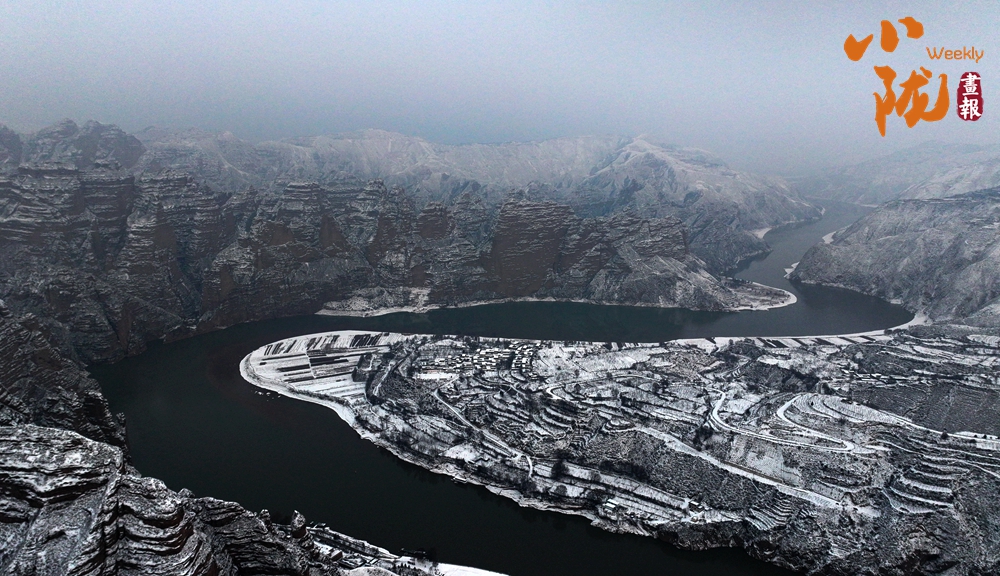 黃河水在峽谷中緩緩流淌,原本色彩斑斕的連綿群山,被皚皚白雪溫柔覆蓋,更顯層次,呈現(xiàn)出一幅壯美的山河畫卷。