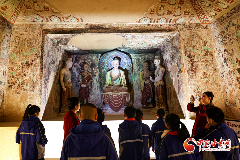 12月29日,蘭州市城關(guān)區(qū)安樂村小學(xué)學(xué)生在家人的陪同下來到敦煌研究院蘭州分院敦煌藝術(shù)館,欣賞“覺色敦煌 莫高精神”敦煌石窟藝術(shù)展,在周末時(shí)光近距離感受敦煌文化藝術(shù)的魅力。