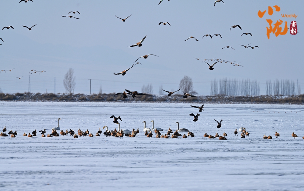 萬物復蘇,臨澤黑河濕地白天鵝、赤麻鴨等棲息覓食,構成了一幅和諧的生態(tài)美景。