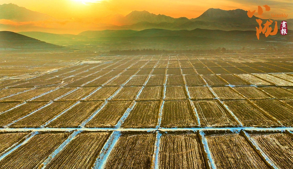 祁連山脈被溫柔的落日余暉浸染,遠處的山峰只露出淡淡的輪廓,變得如水墨畫般朦朧,讓人無限遐想。
