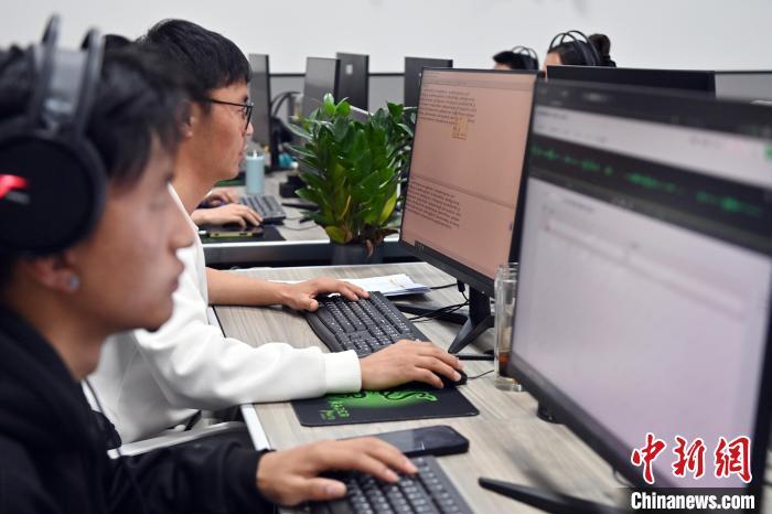 2月27日,在甘肅甘南藏族自治州碌曲縣益西達吉科技有限公司內(nèi),工作人員正在進行藏文古籍數(shù)字化相關工作。該公司主要從事民族古籍數(shù)字化建設和古籍文獻數(shù)據(jù)庫建設,自2019年以來,承擔西藏、四川、甘肅等省區(qū)的藏文古籍數(shù)字化項目。圖為工作人員對藏文古籍數(shù)字化內(nèi)容進行校對。中新社記者 九美旦增 攝