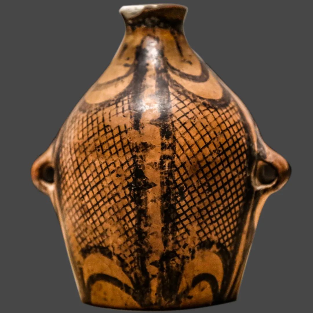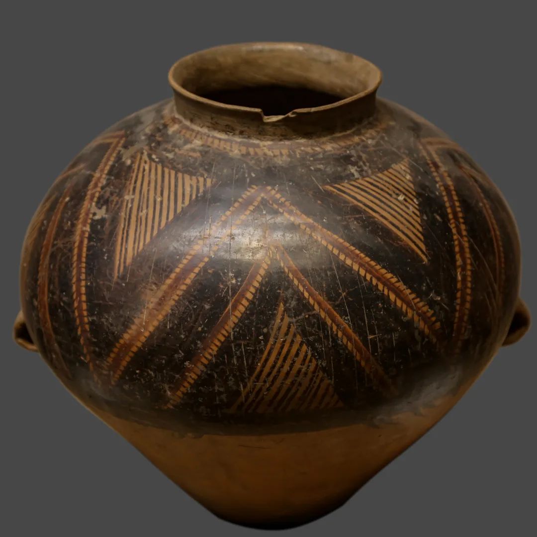 馬家窯文化如黃河上游的基因庫(kù),約公元前3300年萌芽于甘肅定西臨洮,承仰韶文化西進(jìn)之火種,以洮河為血脈、黃土為肌理,在旋轉(zhuǎn)的陶輪間淬煉出黑彩翻涌的史前藝術(shù)密碼,成為西北大地孕育新石器文明的第一縷熾熱胎動(dòng)。