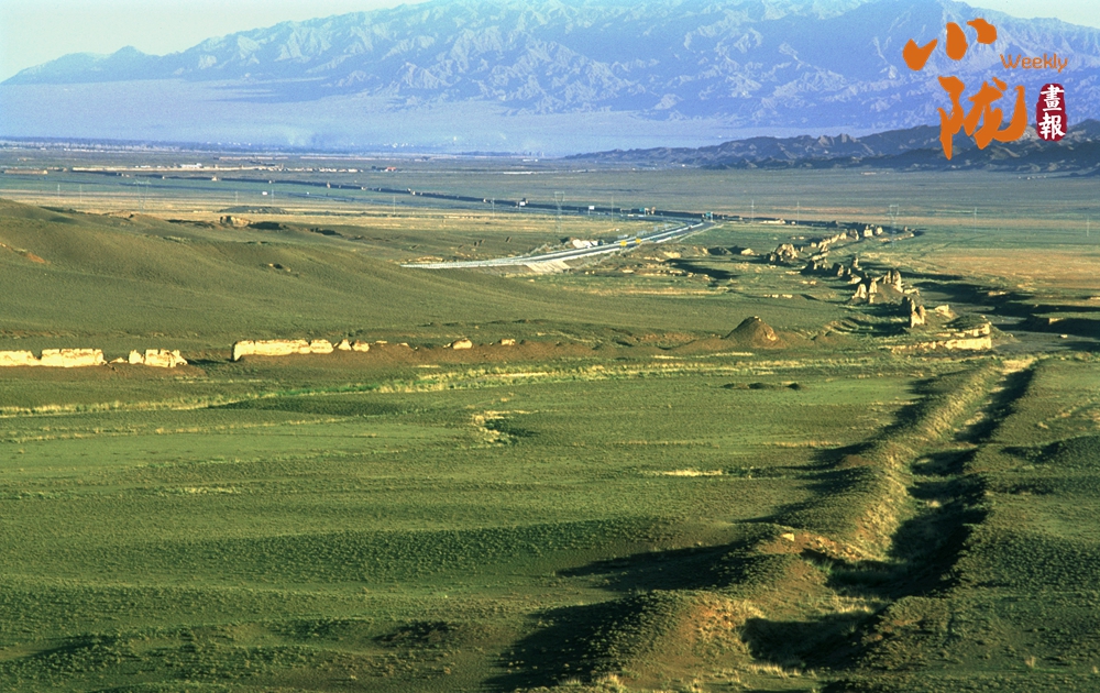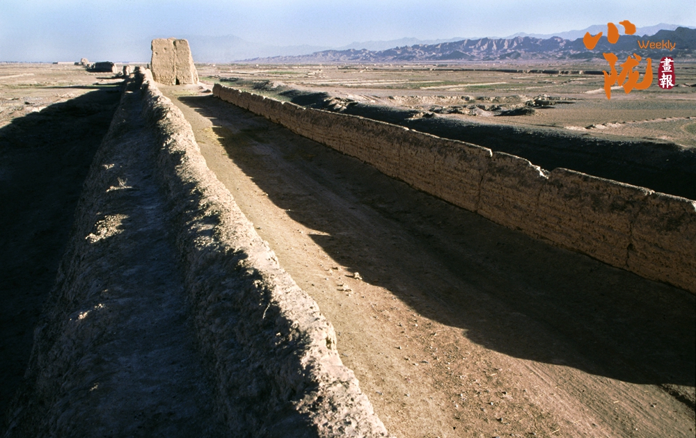 在黛藍(lán)色山脈的映襯下,漢明長(zhǎng)城蜿蜒并行,高于地面的黃色城墻是明長(zhǎng)城,而顏色稍深的壕溝是漢長(zhǎng)城,兩條跨越千載的古長(zhǎng)城最近處不過(guò)十余米,仿佛攜手講述著遠(yuǎn)古的故事……它們也猶如兩位忠誠(chéng)的衛(wèi)士,守護(hù)著這片古老的土地,也見(jiàn)證了絲綢之路的興衰變遷。