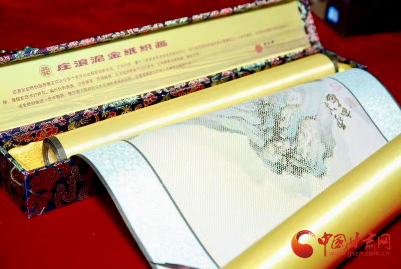 編織后的莊浪泥金紙織畫,色澤鮮明,立體感強,在光線照射下閃閃發(fā)光,令人浮想聯(lián)翩,意味無窮。畫面栩栩如生,仿佛每一根線條都在訴說著古老的故事,展現(xiàn)出獨特的藝術(shù)韻味。