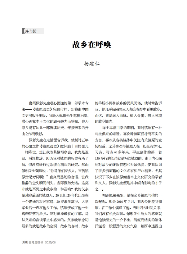 喜聞佩彰先生嘔心瀝血的第二部學(xué)術(shù)專著——《鎮(zhèn)原通史》完稿付梓,即將由中國文史出版社出版,我既為佩彰先生筆耕不輟、潛心研究本土文化的頑強(qiáng)毅力而欽佩,也為家鄉(xiāng)能有如此一部賡續(xù)歷史、連接未來的開山之作而欣慰。