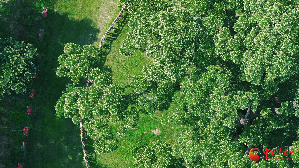 盛夏時(shí)節(jié),崇信縣錦屏鎮(zhèn)關(guān)河村的“華夏古槐王”迎來盛花期。3200歲的“活文物”枝頭繁花似雪,與隴東南的青山黛色相映成趣。