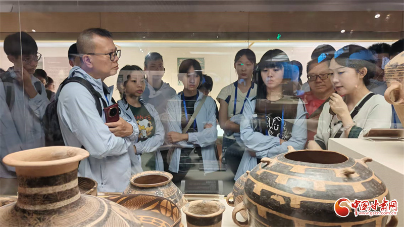 7月24日上午,“同心筑夢(mèng)”2025年澳門青少年甘肅行來到甘肅省博物館,來自澳門培正中學(xué)等7所中學(xué)的30名師生依次參觀了“甘肅古生物化石”“甘肅彩陶”“絲綢之路”三大常設(shè)展覽,在“穿越時(shí)空”的沉浸式體驗(yàn)中感受黃河文化的厚重與絲路精神的多彩,完成了一次跨越億萬年、縱覽文明史的深度研學(xué)之旅。