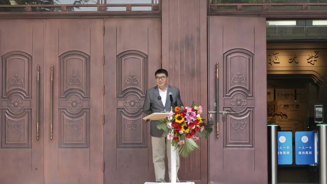 開(kāi)幕式最后,徐兆壽致答謝詞。他說(shuō),做這次展覽的初衷,是因?yàn)樵谶@個(gè)數(shù)字、AI和音視頻的傳播時(shí)代,書(shū)寫(xiě)可以體悟中國(guó)文化的心法。他自三十六歲起開(kāi)始與孔子、老子、鳩摩羅什等圣賢結(jié)緣,五十歲以后又遇見(jiàn)了伏羲、大禹,正是如此多的先賢讓他有了弘道的愿望。同時(shí)特別感謝樓宇烈、莫言、賈平凹、連輯、李敬澤等眾多文化名家的支持,共同呼吁大學(xué)生抄寫(xiě)經(jīng)典,傳承中華文脈。最后,他呼吁更多的人拿起毛筆或鋼筆,重新書(shū)寫(xiě),傳承經(jīng)典,弘揚(yáng)傳統(tǒng)文化。