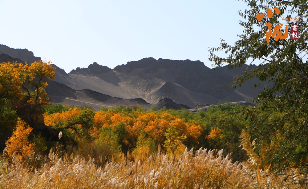 這里山勢奇特,因溝深線長,猶如峽谷,溝邊自生許多胡楊,被稱為“胡楊峽”。你看,溝邊沙山林立,千年胡楊挺拔,溝內溪水清澈纏綿,天然的紅柳、蘆葦、梭梭、沙棗樹等植被錯落有致,共同繪就了一幅秋日畫卷。