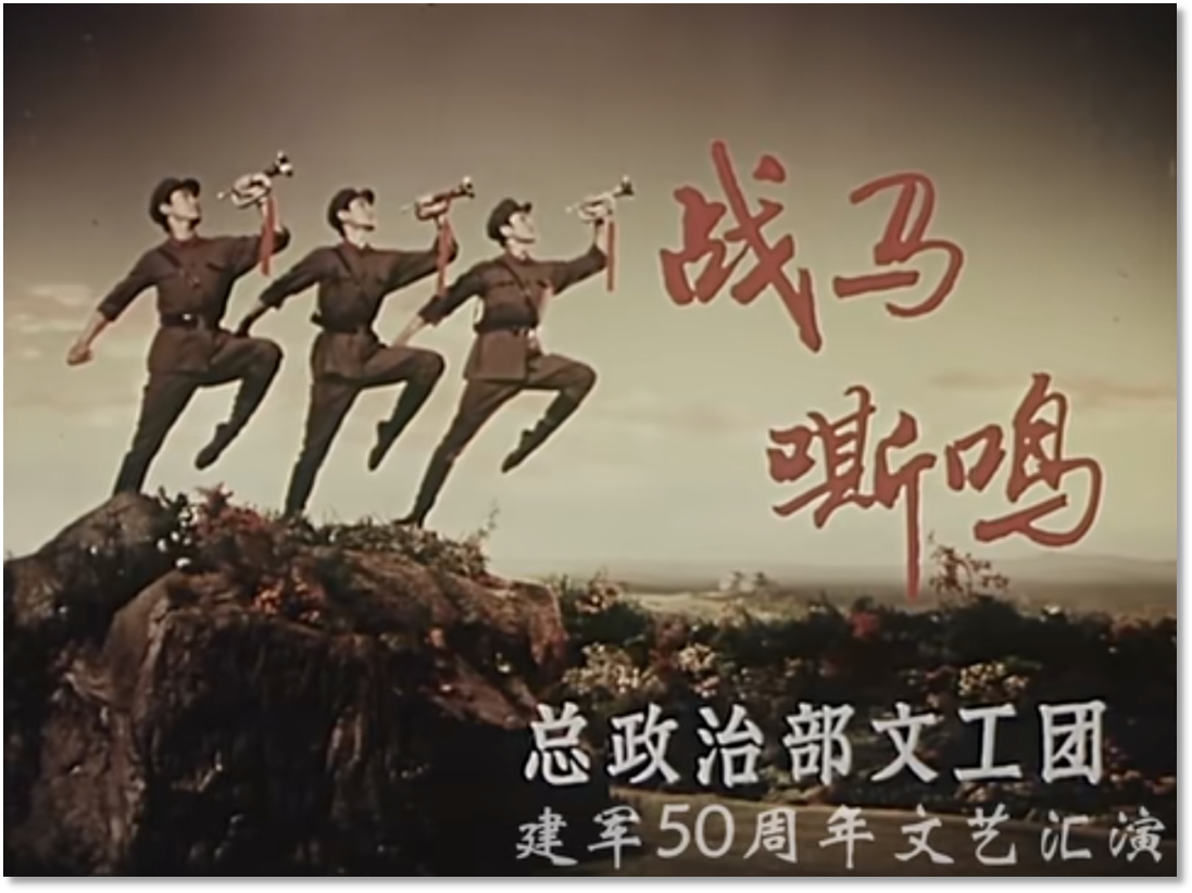 在此背景下,由總政文工團(tuán)推出,蔣華軒、高椿生、王蘊(yùn)杰聯(lián)合編導(dǎo),王中孚主演的中國男子群舞作品《戰(zhàn)馬嘶鳴》應(yīng)運(yùn)而生,其首演于1975年,彼時(shí)距離十一屆三中全會(huì)的召開還有三年時(shí)間,這一時(shí)期的文藝作品正如一顆種子,蘊(yùn)含著中國社會(huì)破土重生、變化成長的新契機(jī)。一經(jīng)推出便廣受民眾歡迎,成為軍隊(duì)形象塑造的經(jīng)典軍旅文藝作品。