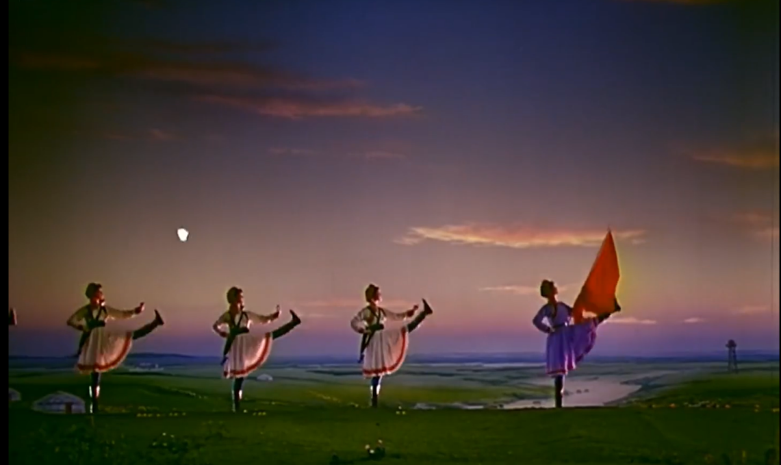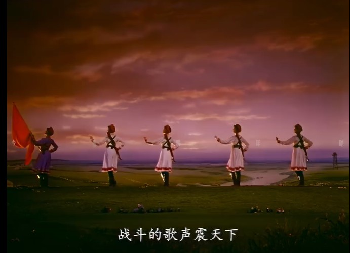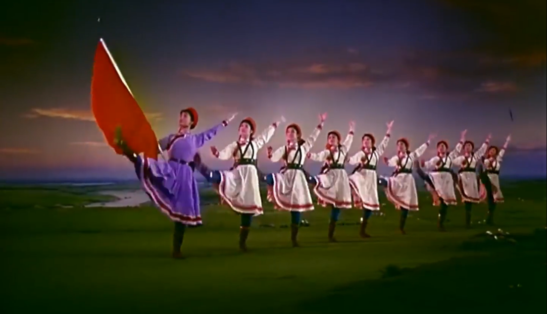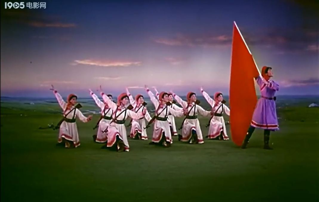 今天,當(dāng)我們談?wù)摗恫菰癖窌r,很大程度上是在談?wù)摗栋倩幤G》中的《草原女民兵》。電影不僅保存了這部舞蹈,更在某種意義上重新定義了它。那些通過鏡頭精心構(gòu)建的畫面,那些經(jīng)過剪輯強化了的節(jié)奏,那些通過混音豐富了的聲音,共同塑造了后世對這部作品的集體認(rèn)知與審美想象。