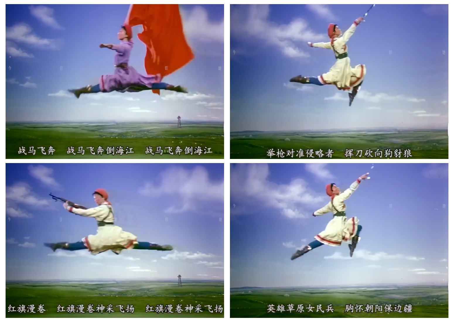 這并非虛構(gòu)的圖景,而是源自錫林郭勒草原的真實印記。1970年,帶著“到草原看真正的馬與女民兵”的想法,編導(dǎo)黃伯壽、梁文綰等深入牧區(qū)一個多月,將北京知青連長“躍馬遠射、藏身馬腹”的矯健身姿,與蒙古牧人的豪邁、知青的堅韌一同采擷為創(chuàng)作素材,又融合賈作光《牧馬舞》中“勒馬翻身”的經(jīng)典語匯,為舞蹈注入了靈魂 。舞臺上的每一個動作,都凝結(jié)著文工團少女們的千錘百煉:每日清晨五點半的軍號、繞軍區(qū)大院的晨跑、浸透練功服的汗水,將十幾歲的青春擰成紀(jì)律與柔美交織的繩——既有“召之即來,來之能戰(zhàn)”的鏗鏘,亦有少女對美的執(zhí)著向往。