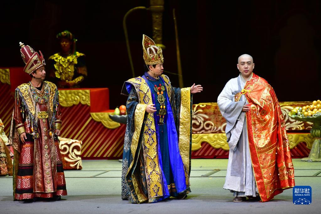演員在敦煌大劇院表演大型民族器樂劇《玄奘西行》(9月23日攝)。新華社記者 陳斌 攝