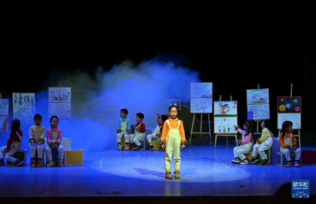 1月16日,小朋友在臺上表演。