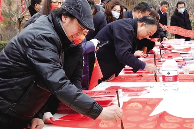 在此次活動中,省文旅廳組織向靜寧縣捐贈了藝術(shù)普及高質(zhì)量發(fā)展、智慧圖書館、三館一站免費開放、戲曲進(jìn)鄉(xiāng)村、“春綠隴原”文藝展演、文化人才服務(wù)支持等項目經(jīng)費共計324萬元?;顒蝇F(xiàn)場,還向群眾贈送了數(shù)字文化資源光盤及1000余份省內(nèi)旅游宣傳資料;組織市級非遺傳承人開展手工技藝展示,向群眾贈送窗花及“福”字等剪紙作品;組織書畫專業(yè)人員為群眾寫春聯(lián)、送書畫,受到群眾的熱烈歡迎,為即將到來的虎年春節(jié)增添了濃濃的喜慶氛圍。