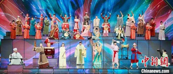 開場節(jié)目《齊天樂》中,以神舟十三號航天員王亞平在空間站奏響經(jīng)典旋律《茉莉花》為序曲,將中國空間站傳來的太空音樂祝福和晚會現(xiàn)場激昂的民樂演奏巧妙融合。中華文化史上與民樂相伴的十組傳奇人物齊聚一堂,從斗琴到合鳴,演繹了一曲融合琴、簫、笙、阮、鼓、琵琶、箜篌、二胡、嗩吶、羯鼓等十種代表性民族樂器的創(chuàng)意交響。