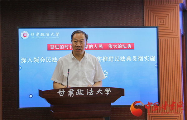 中國甘肅網(wǎng)7月9日訊 (本網(wǎng)記者 彭曉姣)7月8日,甘肅政法大學(xué)召開“深入領(lǐng)會民法典核心要義,切實推進(jìn)民法典貫徹實施”理論研討會。研討會的主旨是深入貫徹落實習(xí)近平總書記關(guān)于“切實實施民法典”的重要講話精神,為甘肅省有效實施民法典、不斷完善民商事法律制度提供理論支撐。