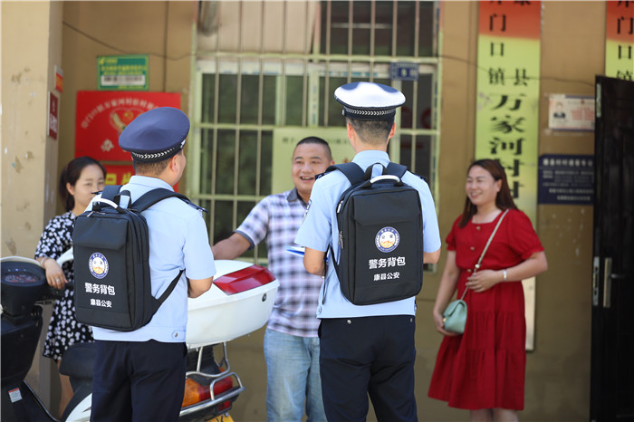 2021年6月,康縣公安局總結(jié)了豆壩派出所“背包警務(wù)”好的做法和典型經(jīng)驗(yàn),向全縣18個(gè)派出所全面推廣“背包警務(wù)”。一次性為全縣67名社區(qū)民警統(tǒng)一購(gòu)置了警務(wù)背包,并增添了服務(wù)項(xiàng)目,進(jìn)一步擴(kuò)充完善“背包警務(wù)”內(nèi)容。