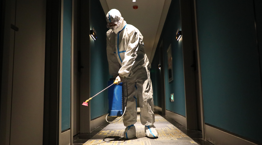 張九夫每天出現(xiàn)在點(diǎn)位的次數(shù)太多了,穿著防護(hù)服的瘦高身影和那標(biāo)志性俯身下去的動(dòng)作,再配上一個(gè)遮住大半邊臉的口罩。看一眼,大家就知道——九夫來(lái)了。長(zhǎng)時(shí)間的相處,張九夫與戰(zhàn)友們之間多了一分相互了解,他也用獨(dú)有的幽默和關(guān)心消去了戰(zhàn)友們的疲憊。徐洪濤笑著說(shuō):“他每天都和我說(shuō)要每天新學(xué)一道菜,讓我品嘗他的黑暗料理。”完成消殺作業(yè)的同事們說(shuō)起張九夫,一掃疲憊,常常笑得彎下腰。