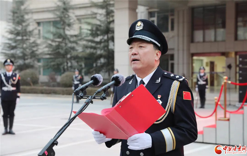 中國(guó)甘肅網(wǎng)1月10日訊(本網(wǎng)記者 程?。?月10日,蘭州市公安局舉行升警旗儀式,熱烈慶祝第三個(gè)中國(guó)人民警察節(jié),進(jìn)一步激勵(lì)全警深入學(xué)習(xí)宣傳貫徹黨的二十大精神,牢記初心使命、堅(jiān)定從警信念,匯聚向高而攀、向新而生、向遠(yuǎn)而行的磅礴力量,推動(dòng)新時(shí)代蘭州公安高質(zhì)量發(fā)展,為全面建設(shè)社會(huì)主義現(xiàn)代化國(guó)家、全面推進(jìn)中華民族偉大復(fù)興保駕護(hù)航。省公安廳副廳長(zhǎng)、蘭州市副市長(zhǎng)、市公安局黨委書(shū)記、局長(zhǎng)王立朝出席并講話。
