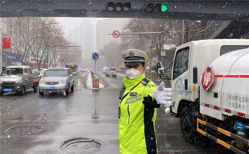 2月8日凌晨,蘭州市區(qū)出現(xiàn)降雪天氣,受降雪天氣影響,轄區(qū)各條道路路面積雪濕滑,給人民群眾安全出行帶來(lái)隱患。蘭州市公安局交警支隊(duì)東崗大隊(duì)根據(jù)支隊(duì)安排部署,迅速啟動(dòng)惡劣天氣應(yīng)急預(yù)案,全力保障降雪天氣道路安全暢通。
