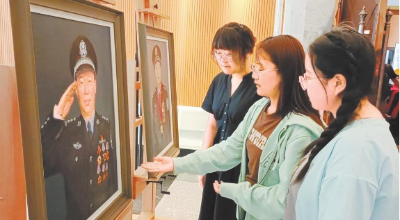 學(xué)生參觀英模畫像展覽