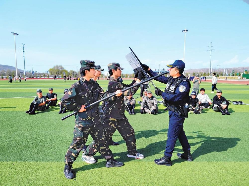 公安民警示范演練反恐防暴技能。4月11日,臨洮縣公安局組織警務實戰(zhàn)教官到定西市職業(yè)技術學校開展反恐防暴演練培訓。新甘肅·甘肅法治報通訊員李鴻昌攝