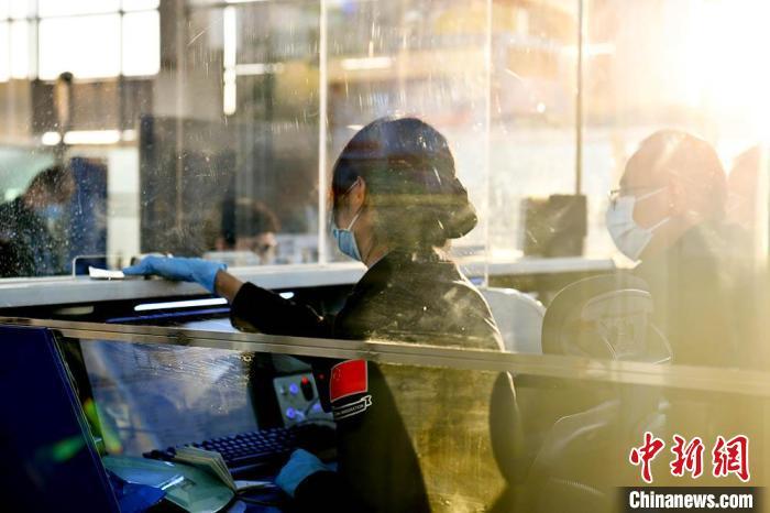 2024年11月7日,蘭州邊檢站執(zhí)勤民警驗放國際航班旅客。王翔宇 攝