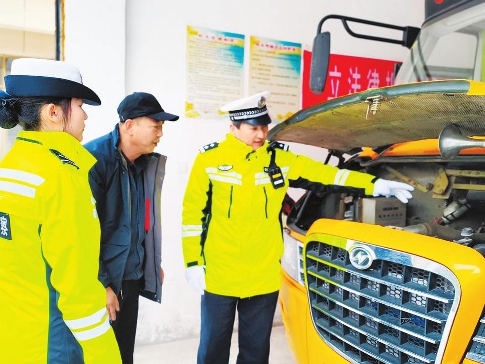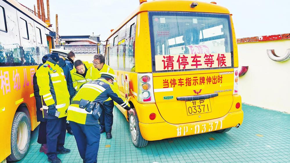 民警在檢查幼兒園校車。開學在即,為保障學生上下學乘車安全,2月18日,臨潭縣公安局交警大隊聯(lián)合縣交通運輸局對校車開展“安全體檢”。 新甘肅·甘肅法治報記者金凡裕攝