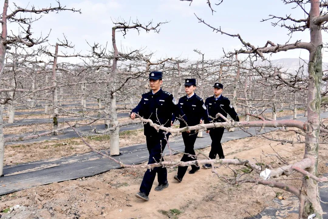當(dāng)夕陽(yáng)給蘋果樹(shù)鍍上金邊,結(jié)束巡邏的民警們又聚在派出所研判當(dāng)天收集的農(nóng)情。在這片被精心呵護(hù)的土地上,青綠色的嫩芽正醞釀著金秋的甜蜜,花牛派出所民輔警用腳步丈量果園,用責(zé)任護(hù)航平安。他們的身影與果農(nóng)們的笑臉交織在一起,構(gòu)成了一幅和諧美好的春耕畫(huà)卷。“一年之計(jì)在于春,春耕是農(nóng)民一年中最重要的時(shí)候,我們多跑跑腿、多操操心,果農(nóng)們就能安心種地、放心收成。”張?zhí)锝苄χf(shuō)道。陽(yáng)光下,他們的警徽熠熠生輝,映照出人民警察為人民的初心與擔(dān)當(dāng),而警民共繪的平安畫(huà)卷,早已融入隴原春深處的每一寸生機(jī)。