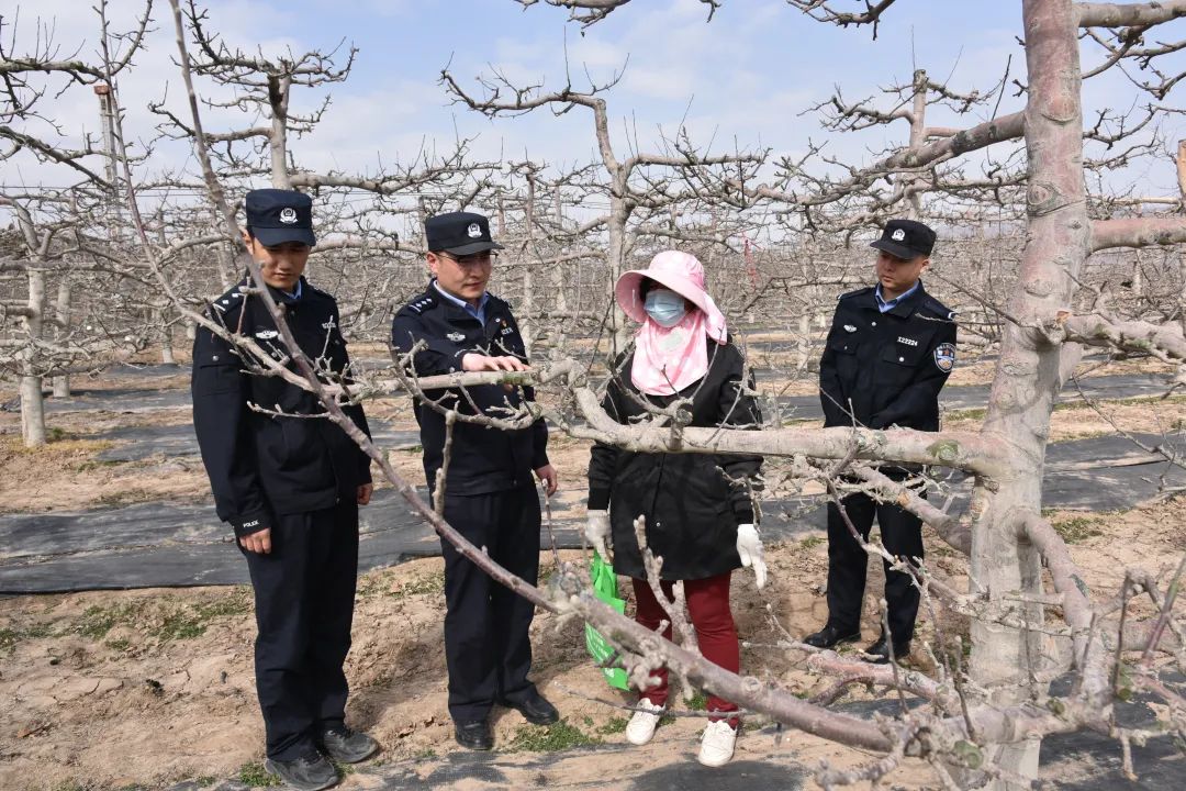 在這片希望的田野上,一抹抹藏藍(lán)色的身影穿梭于果園中,格外引人注目。“老武,今年果樹(shù)長(zhǎng)勢(shì)不錯(cuò)?。〔贿^(guò)最近天氣干燥,可得注意防火,別在地頭抽煙了!”民警張?zhí)锝芤贿呇策?,一邊笑著提醒正在修剪果?shù)的果農(nóng)武大叔。“放心吧,張警官,你們天天來(lái)巡邏,我們心里踏實(shí)多了!”武大叔擦了擦額頭的汗,連連點(diǎn)頭道。