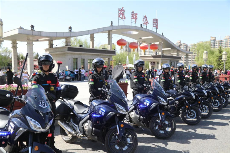 黑色警用摩托車、身背防搶奪電擊抓捕棍(俗稱“大寶劍”)、手持臂盾、腰挎“92式”手槍……夜幕降臨,華燈初上。五一期間,在臨夏市人流密集的街頭,你總能看到身著特警制服的警察,他們時而立正,矗立在人群中如一座大山;時而巡邏,穿梭在人群中如一張“地網(wǎng)”;呼嘯而過的特警摩托車,威風(fēng)又神秘,成了群眾眼中最美的風(fēng)景。