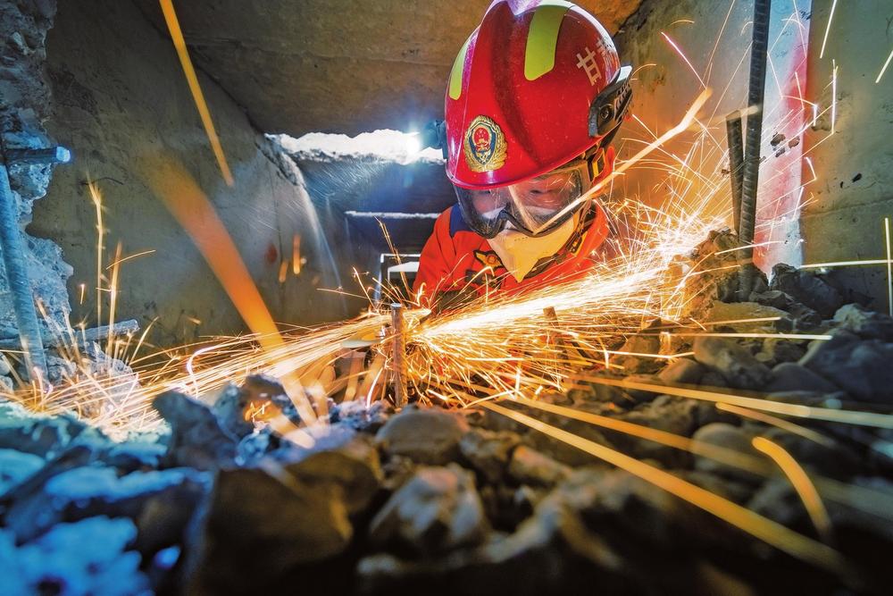 眼看就要取得勝利,余震突然來(lái)襲,救援現(xiàn)場(chǎng)可能出現(xiàn)二次坍塌的風(fēng)險(xiǎn)。救援人員迅速組織人員撤離,在確保現(xiàn)場(chǎng)環(huán)境安全后對(duì)風(fēng)險(xiǎn)點(diǎn)進(jìn)行支撐加固處理,再次展開(kāi)救援。