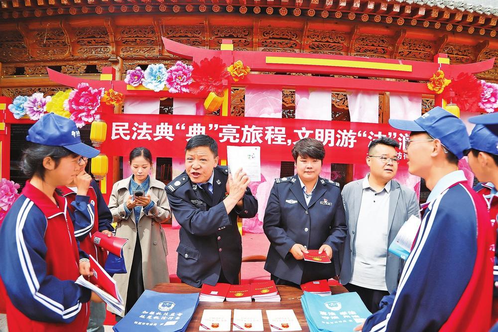 工作人員宣講民法典知識(shí)。5月11日,臨夏市司法局八坊司法所在蓋碗茶廣場(chǎng)開展民法典主題宣傳活動(dòng)。新甘肅·甘肅法治報(bào)記者陳孝志攝
