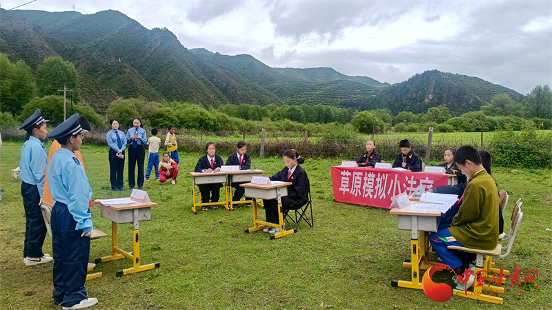 中國甘肅網(wǎng)7月5日訊(西北角·中國甘肅網(wǎng)記者 宋芳科 趙志富)7月4日,一場別開生面的模擬法庭在草原上舉行。來自甘南州合作市勒秀鎮(zhèn)中心小學(xué)的學(xué)生們,通過模擬庭審,上了一堂生動的普法課。這也是甘南州兩級檢察機(jī)關(guān)“崗拉梅朵”未檢工作室又一次送法進(jìn)校園,為未成年人的成長撐起堅實的法律保護(hù)傘。