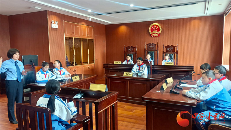 同樣,7月4日,在“崗拉梅朵”未成年人法治教育基地,也有一場模擬法庭庭審在進(jìn)行,來自合作一小五年級的學(xué)生在這里開庭審理一起盜竊案。