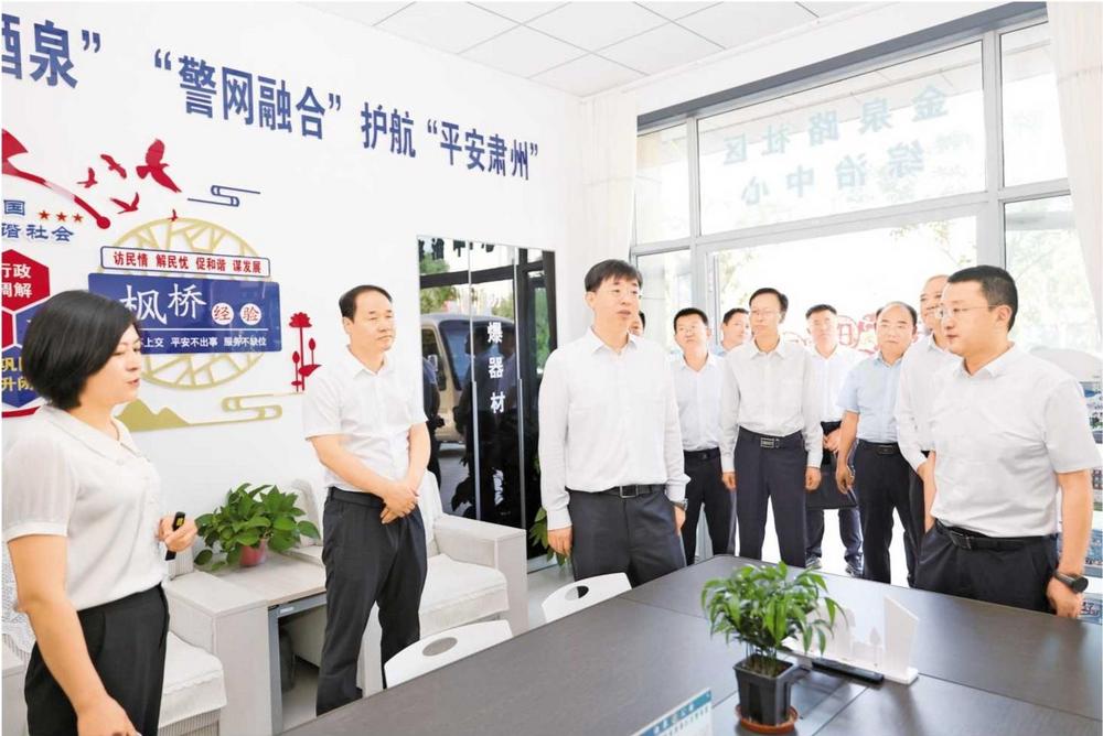 酒泉市領導在肅州區(qū)綜治中心調研(2025年7月9日拍攝)。