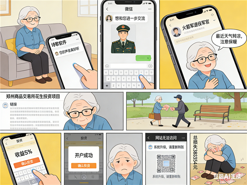 中國(guó)甘肅網(wǎng)4月9日訊(西北角·中國(guó)甘肅網(wǎng)記者 程健 實(shí)習(xí)生 馬文博)近日,蘭州市城關(guān)區(qū)72歲的紀(jì)奶奶(化名)遭遇一起“情感+投資”復(fù)合型電信網(wǎng)絡(luò)詐騙,畢生積攢的386萬(wàn)余元被騙子悉數(shù)卷走。騙子以詩(shī)歌朗誦軟件為突破口,憑借“聲音好聽”的夸贊搭建情感橋梁,偽裝軍人身份設(shè)誘導(dǎo)投資,最終通過線上轉(zhuǎn)賬+線下現(xiàn)金交易的方式,將老人的養(yǎng)老錢騙得一干二凈,其套路之深、金額之大令人觸目驚心。目前,相關(guān)案件正在進(jìn)一步偵辦中。